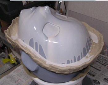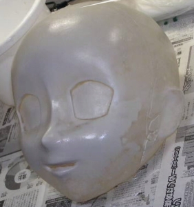 Sculpting![]() Clay, paper pulp etc. | Folding![]() Paper, Pepakura designer | Making silicone mold![]() Silicone, spatula | Apply FRP![]() *FRP : Fiber-reinforced polymers (fiberglass) | Mouth and eyes![]() Drill, etc. | Paint![]() Aerograph, paint, varnish | Padding![]() Foam, cloth, glue |